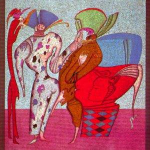 ACROBATS by Mihail Chemiakin is a lithograph with an image size of 27″ X 19 1/2″ plus full margins. The edition size is 300. It is pencil signed and numbered by the artist.