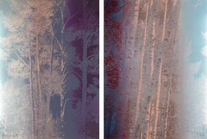 OPAL AURA I & II by Paula Crane is an etching diptych published in an edition of 300. The size of each image is 32” X 23” and each piece is pencil signed and numbered by the artist.