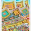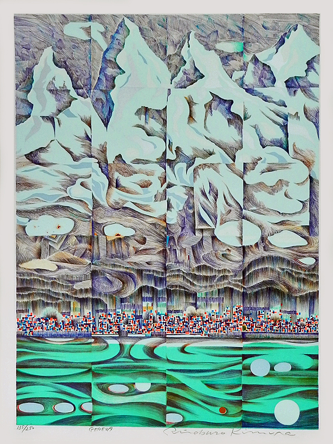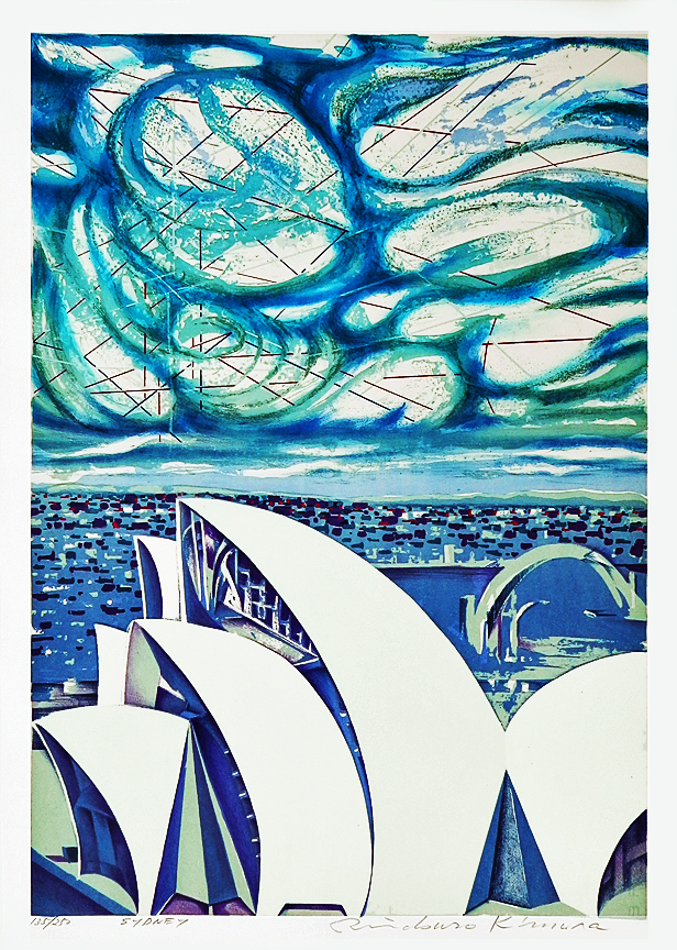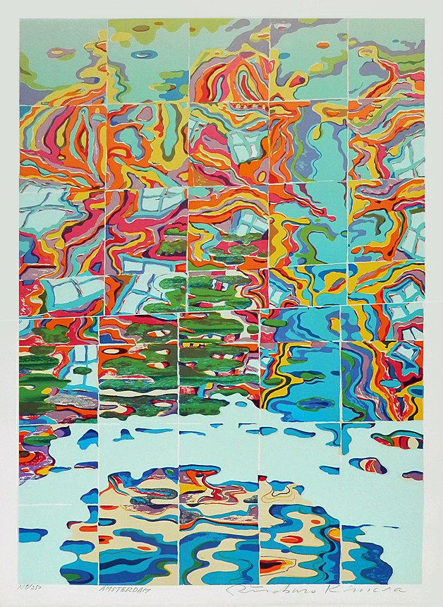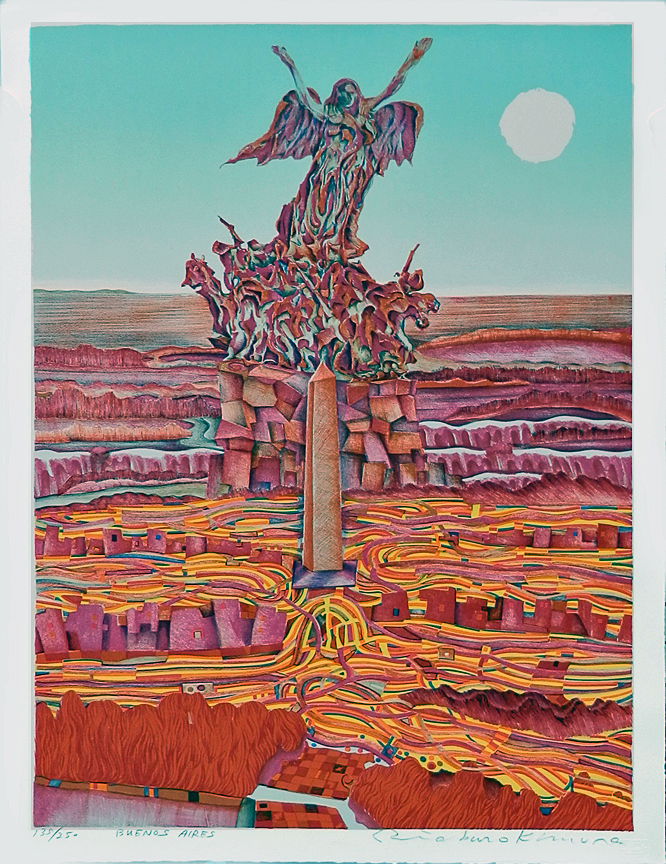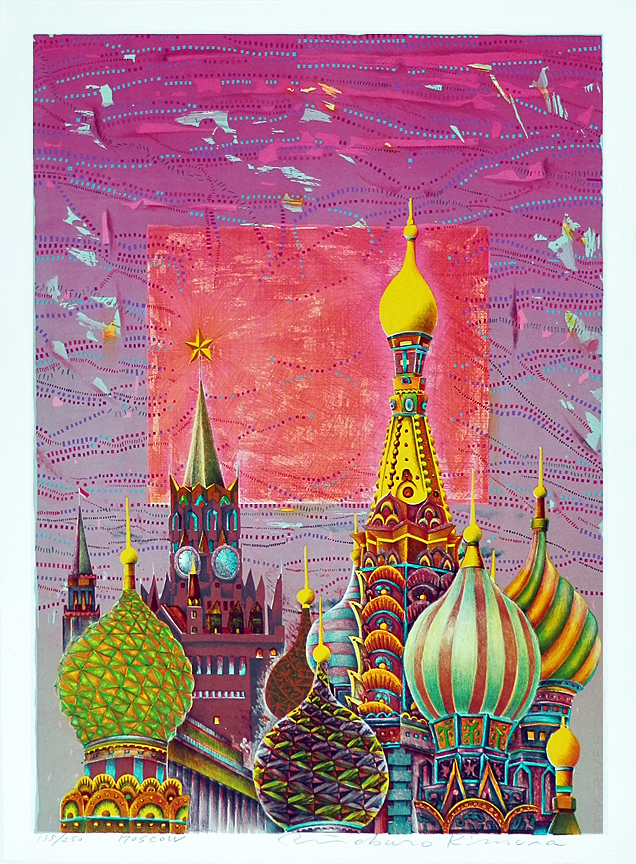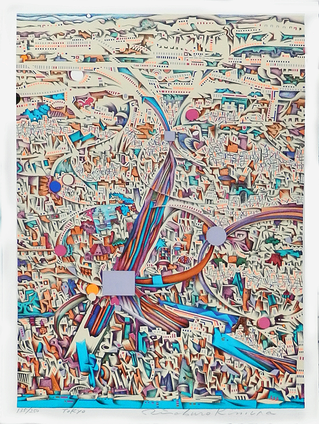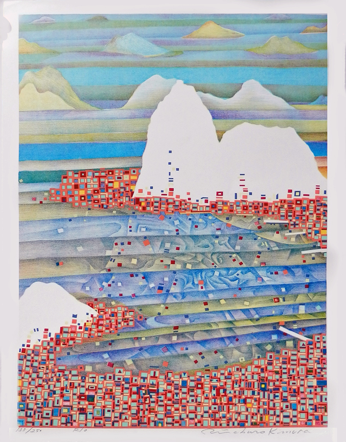 “ATHENS” is a print from the suite of 20 mixed media prints, depicting the artist’s interpretation of each city, was entirely hand produced by the artist. The image size of each print is 28″ X 20″ plus margins in an edition of 250.